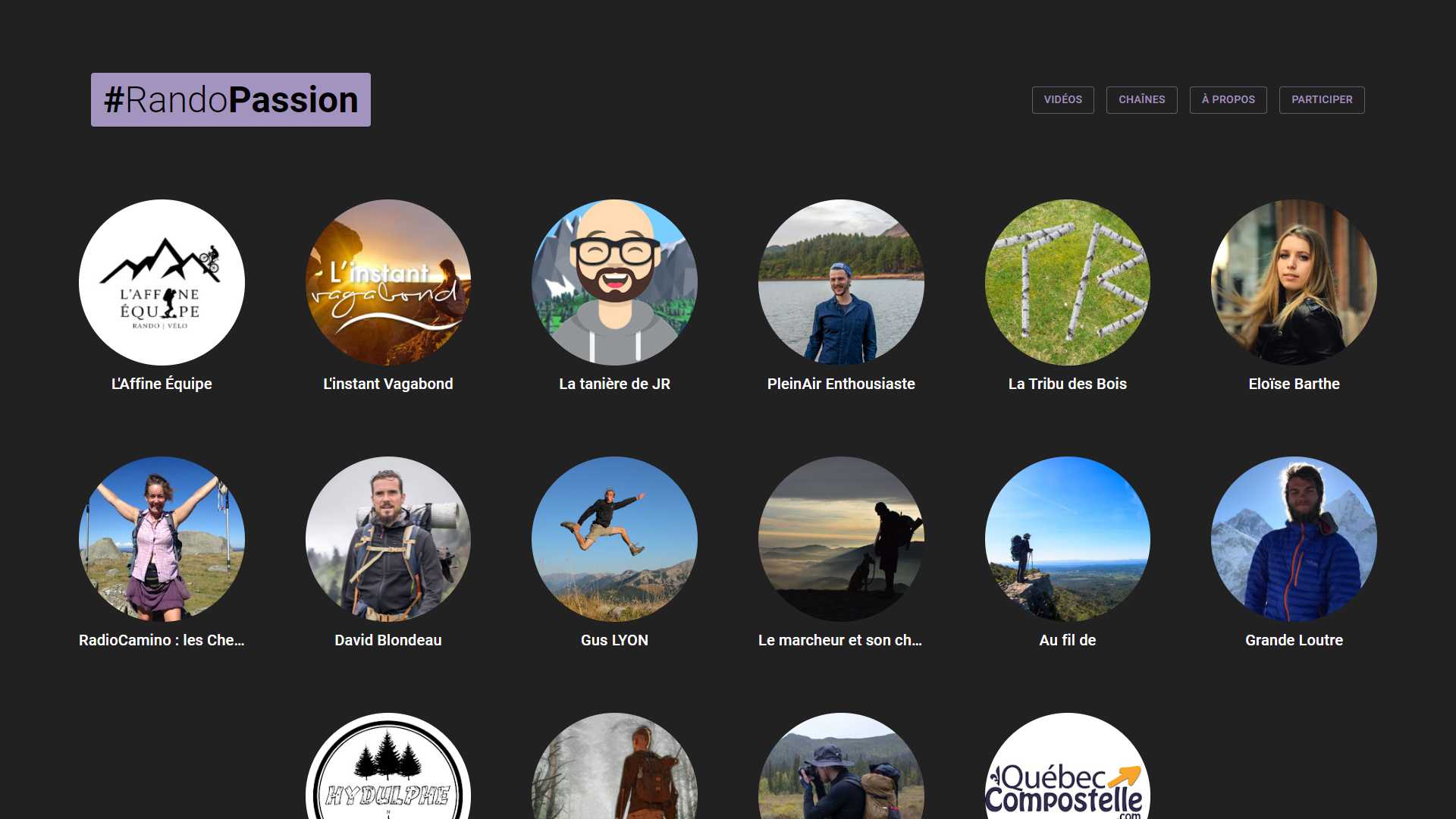 RandoPassion est une collaboration de vidéastes francophones (France, Suisse, Belgique, Québec) passionnés de randonnée. RandoPassion rassemble des témoignages de randonneuses et de randonneurs aux profils, pratiques et expériences variés. Lire la suite...